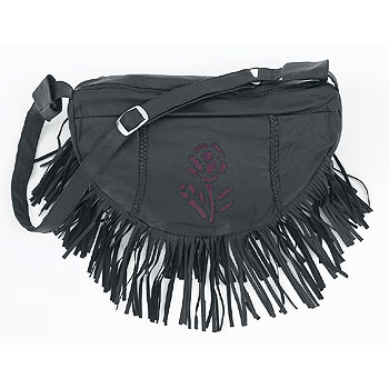 Black Leather Purse with Purple Rose Inlay