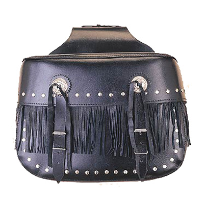 Large heritage saddle bag with fringe, studs and concho, straight.